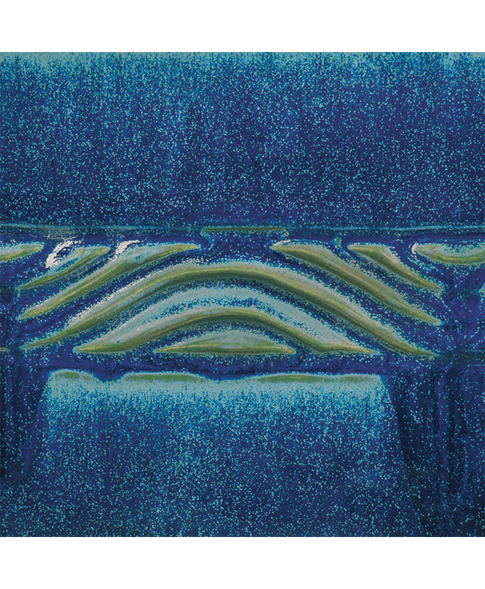 Tuscan Blue is a deep blue, semi-matte glaze that breaks light blue to moss green over texture.