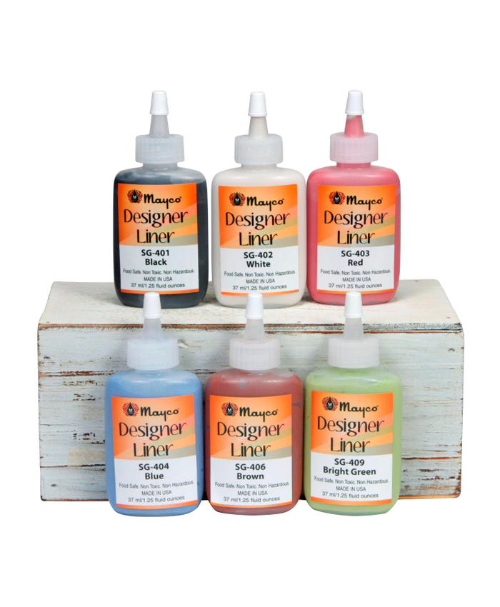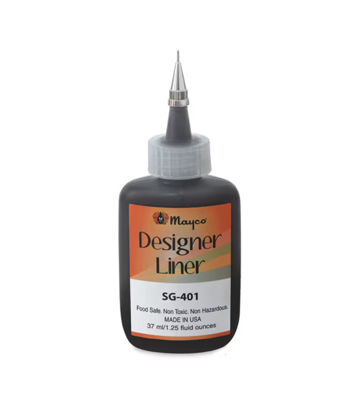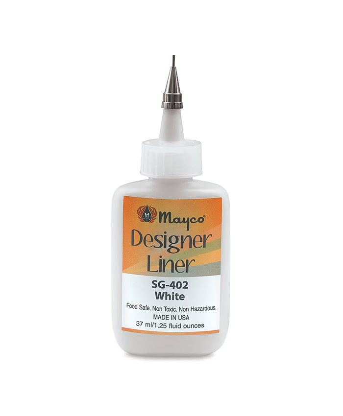 Opaque Designer Liner is a rich, concentrated pigment that produces fine detail with lines, dots, and letters. The metal writer tip allows for ultimate control to draw ultra-fine or bold lines, typography and intricate illustrations. Designer Liner is best when used under non-moving transparent or semi-transparent glazes. Freeze/Thaw stable.