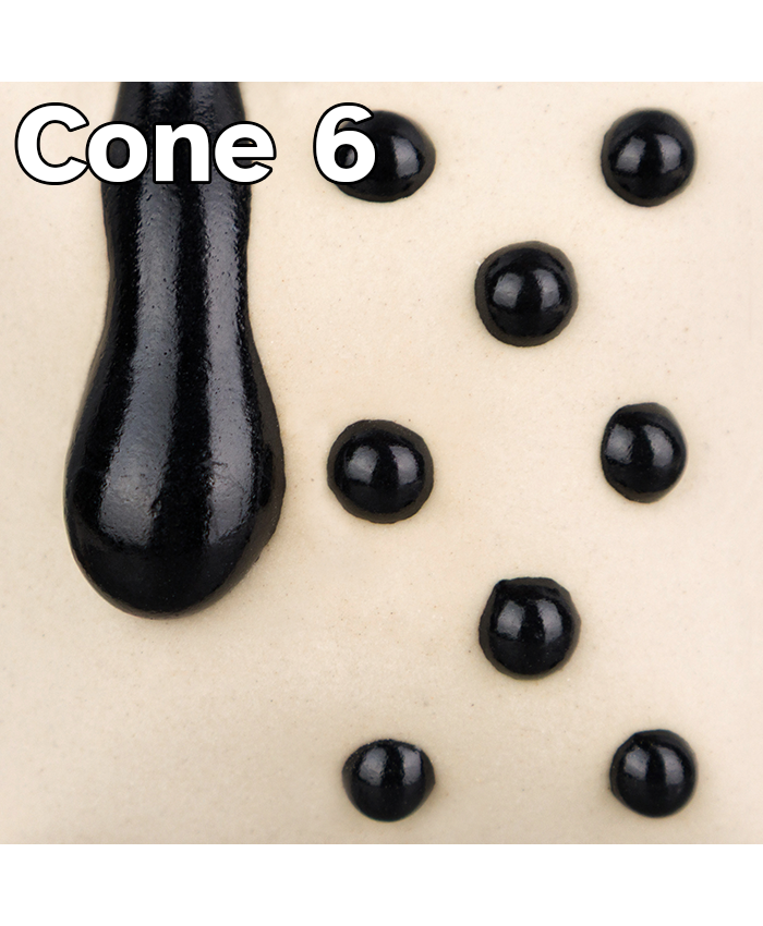 Glaze remains dimensional over Underglazes and Stoneware Engobes; flattens under or over a glaze.