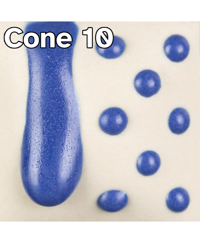 Glaze remains dimensional over Underglazes and Stoneware Engobes; flattens under or over a glaze.