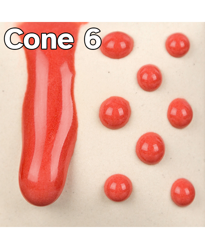 Glaze remains dimensional over Underglazes and Stoneware Engobes; flattens under or over a glaze.