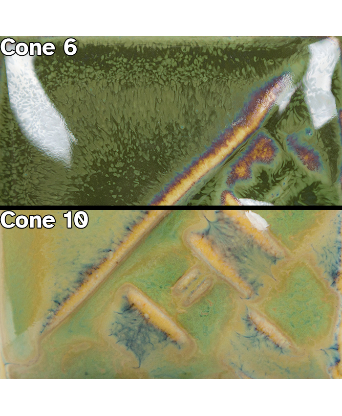 Cone 10 reduction: Beetle Wing changes to a glossy blue. Heavy crystal application may effect color results and movement.