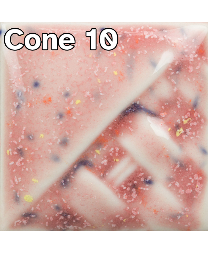 Cone 10 reduction: Pink Speck lightens. Specks blur and lose definition with increased application thickness; crystallization may develop. Remains stable.